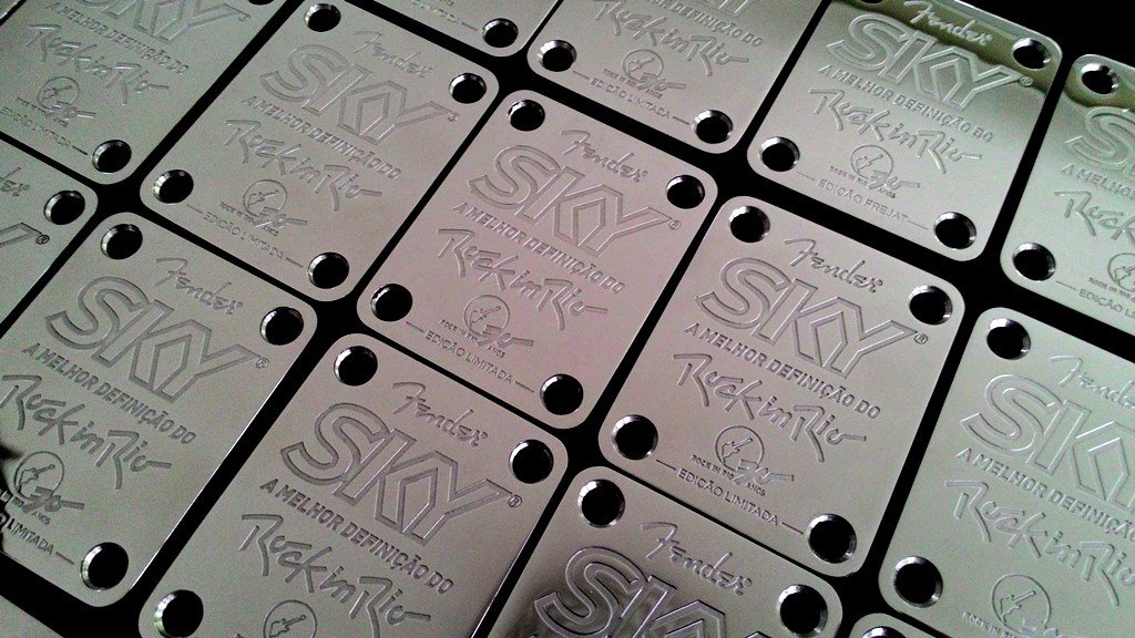 Como músico amador, a paixão por instrumentos musicais elétricos acabou me direcionando para a criação de uma linha de produtos. Da ideia surgiu a percepção de um produto de vanguarda. Em 2011 produzimos nossa primeira peça – o neck plate customizado. Na época, fizemos uma réplica do modelo utilizado pela Fender nos anos 70 com gravação da logomarca em relevo. Essa primeira peça foi feita em aço inoxidável, cortada a laser para garantir um encaixe perfeito, gravada em relevo e com acabamento polido espelhado feito à mão. Ficou perfeita e rapidamente se tornou um objeto desejado pelos músicos.
