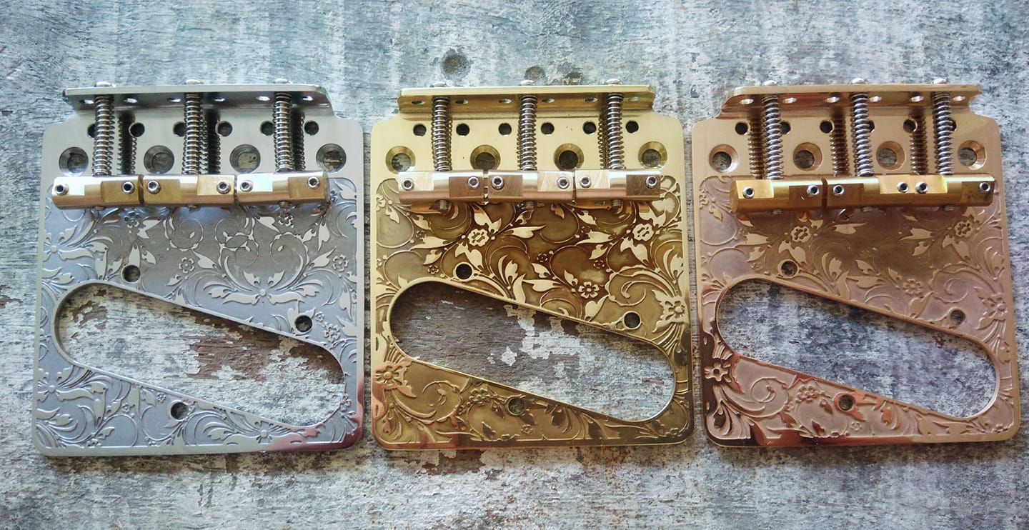 No caso especialmente das pontes, criamos novas possibilidades combinando materiais, como o aço inox com saddles em inox ou latão. Trouxemos uma ampla opção de materiais e acabamentos para todas as peças, inclusive com a possibilidade de fabricação, sob encomenda, de modelos que não existem mais no mercado. Lançamos produtos completamente inovadores, como por exemplo, a ponte vintage para Telecaster com 2mm de espessura, em aço inox e com saddles em latão. Desenvolvemos um modelo Hard Tail Full Brass, base e saddles maciços em latão, um modelo que também não existia no mercado. Além do mais, esse último modelo também pode ser feito full inox com base e saddles em inox.