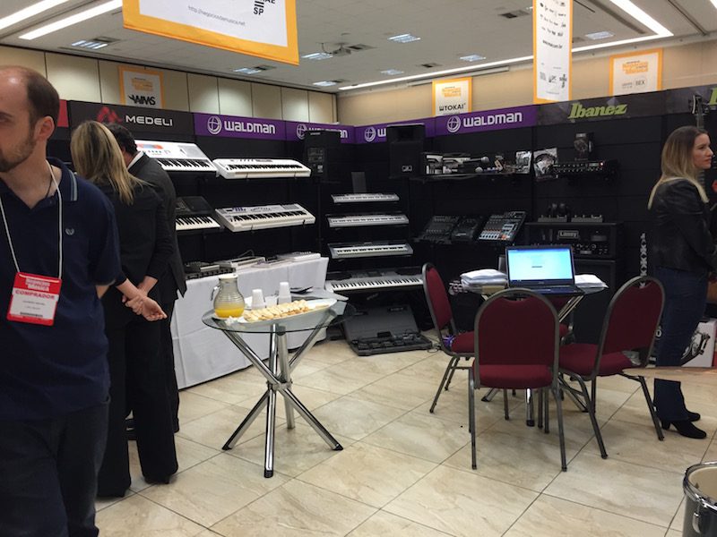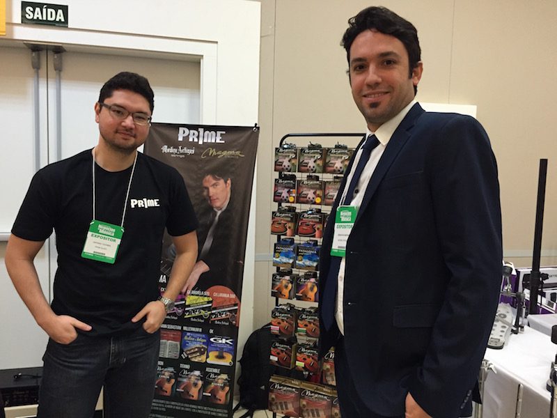 “É nossa primeira participação no Encontro e mesmo sendo o primeiro dia dá para perceber que o público é exatamente o nosso objetivo: só lojistas. Estamos muito felizes de estar aqui!”, disse Sebastián Medina, da Magma Strings no estande do seu distribuidor local Prime Music.