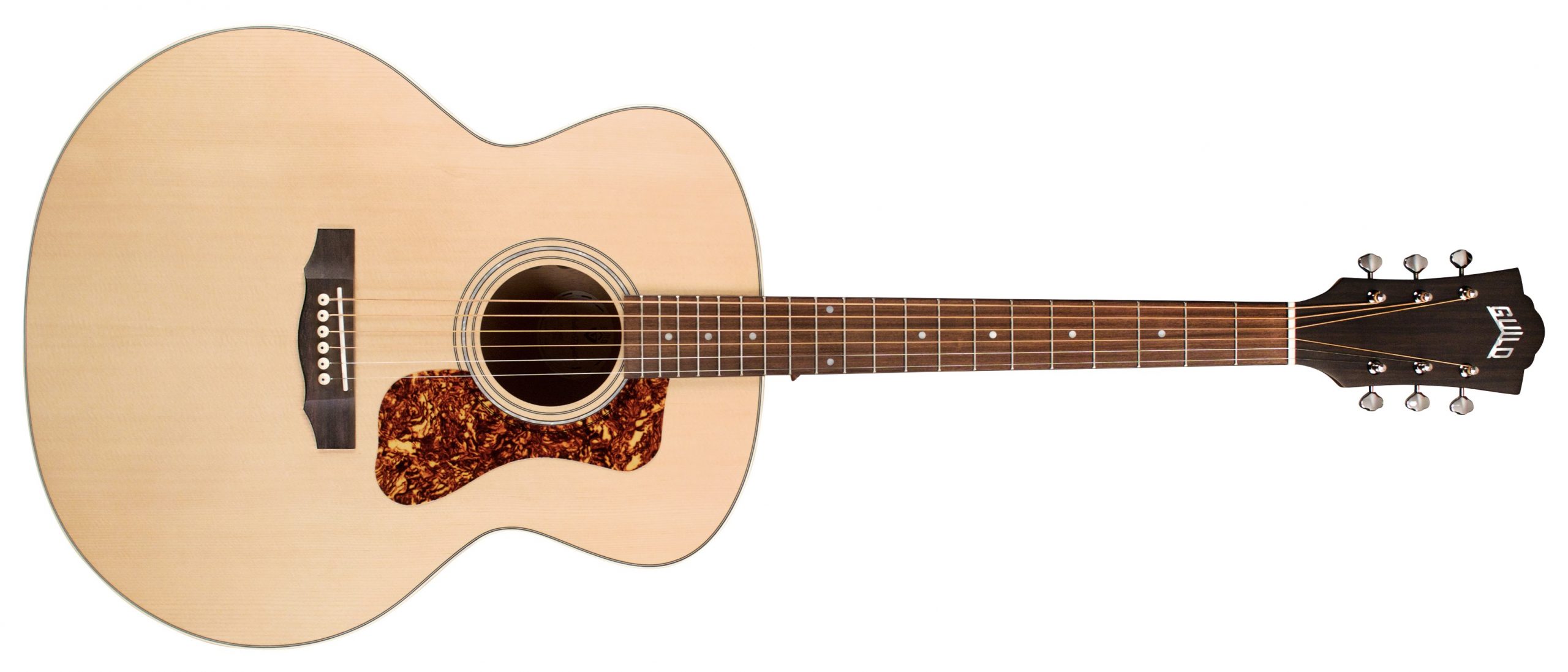 Com este violão, a Guild oferece o formato jumbo para novos músicos agora a um preço de nível de entrada acessível para o bolso dos músicos. O modelo F-240E tem um tampo de spruce sólido, laterais de mahogany e fundo arqueado em mahogany, para proporcionar o tom acústico característico da empresa. O design do fundo arqueado da Guild permite um volume e projeção aprimorados, com sustain prolongado e som completo. Esse violão apresenta eletrônica AP-1 projetada pela Fishman para a Guild, diapasao e ponte em Pau Ferro, nut & saddle em osso, roseta em nacar, pickguard em carey e acabamento de poliuretano de cetim. Disponível em cor Natural.
