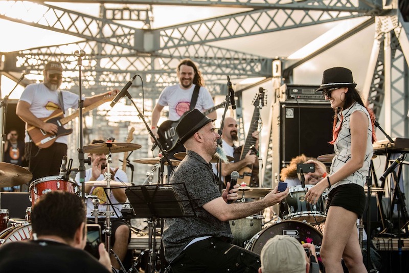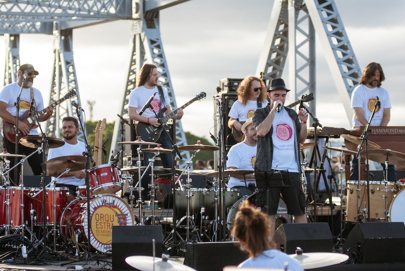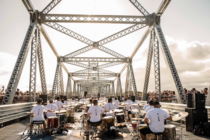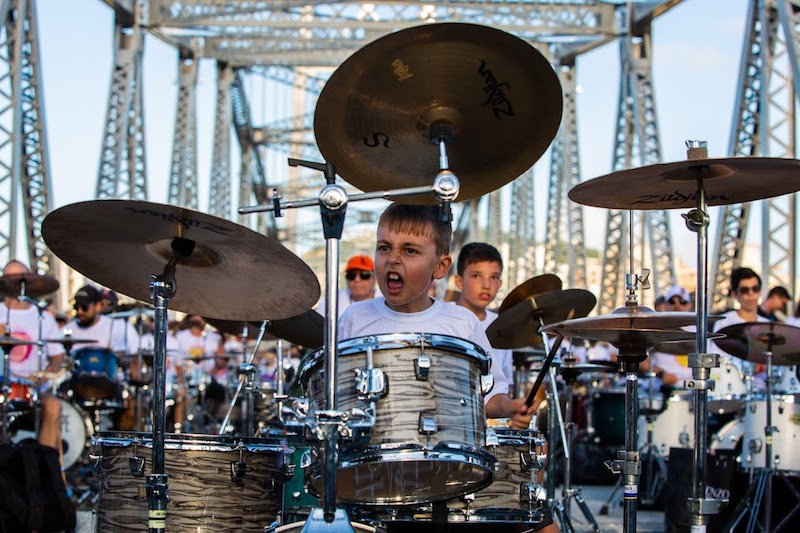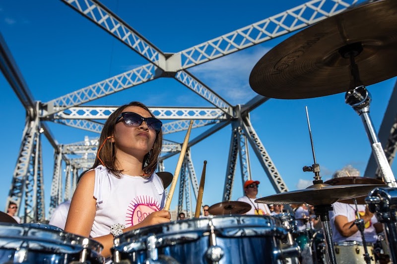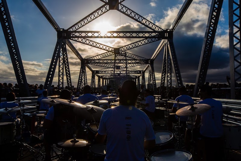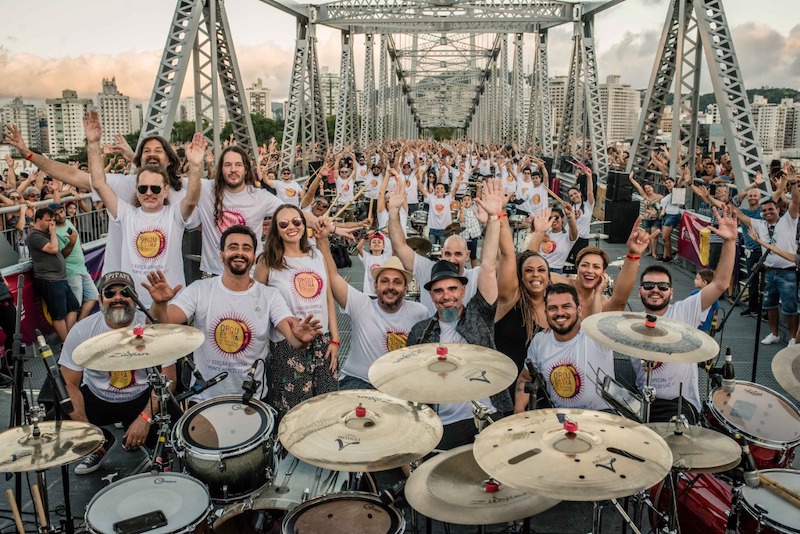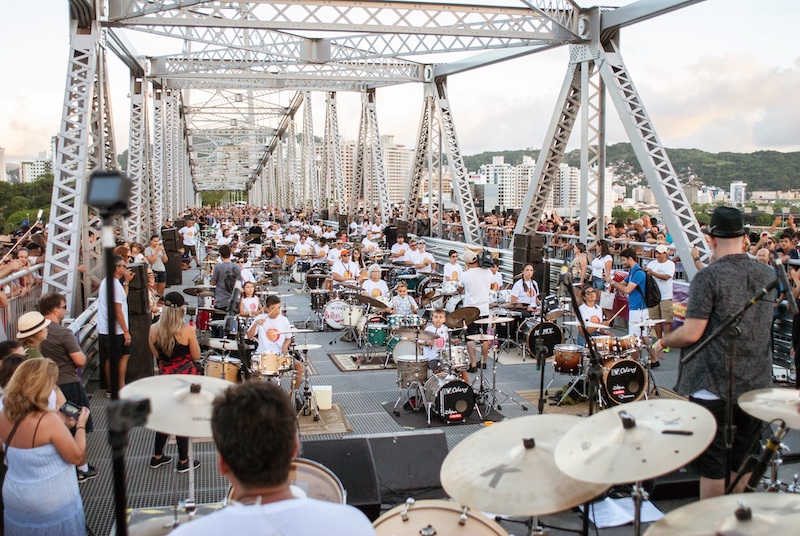 60 bateristas tocaram na ponte Hercílio Luz em Florianópolis