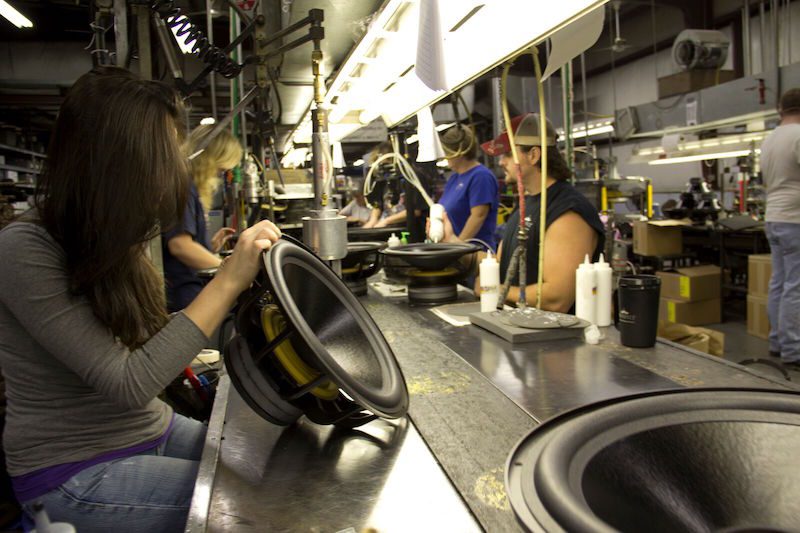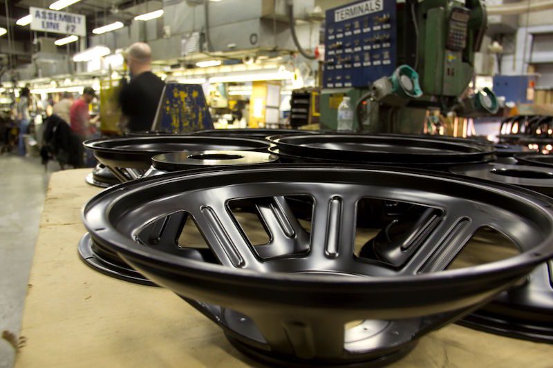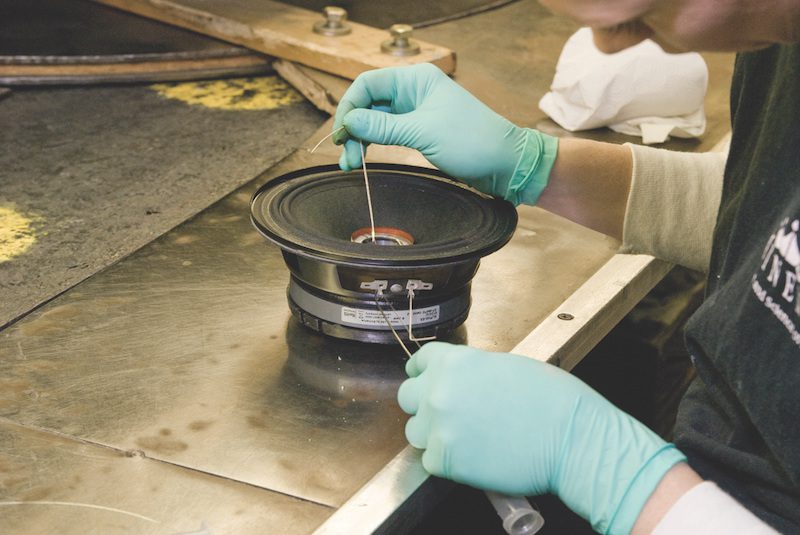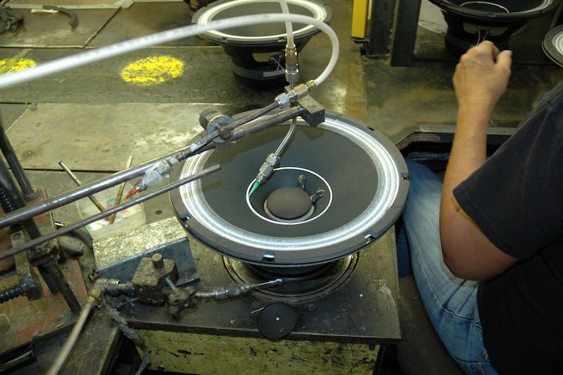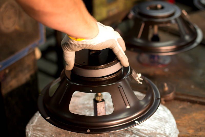 Chris: Na fábrica da Eminence Speaker em Kentucky, temos aproximadamente cem pessoas. Fabricamos alto-falantes para áudio pro, para guitarra e baixo, drivers de compressão e um aparelho de proteção para alto-falantes chamado D-fend. Atualmente produzimos cerca de 2 mil alto-falantes por dia.