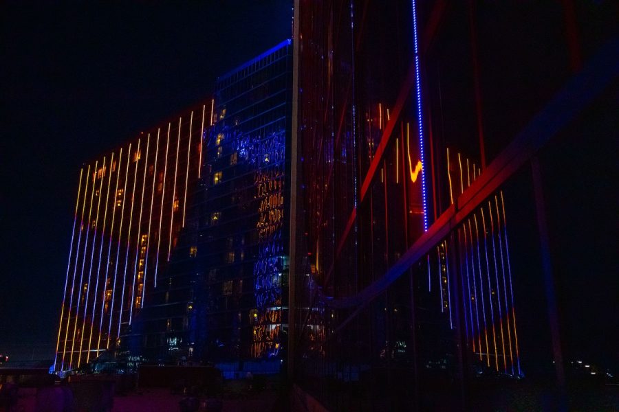 A instalação cobre as duas torres do icônico resort com mais de 350 mil pixels controlados pelo sistema Ai da Avolites.