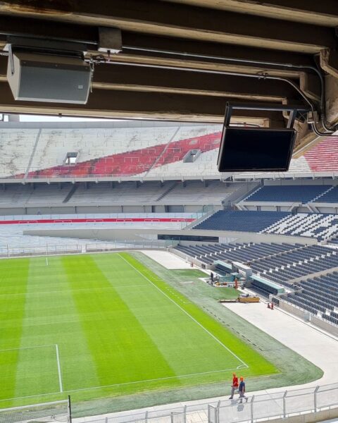 O estádio Más Monumental, em Buenos Aires, concluiu uma modernização completa do sistema de áudio com equipamentos da Electro-Voice e da Dynacord para atender aos requisitos necessários à realização de jogos da Copa do Mundo de 2030, segundo a fabricante. O projeto também incluiu uma solução Praesensa de sonorização e alarme por voz, voltada a funções de segurança e evacuação.