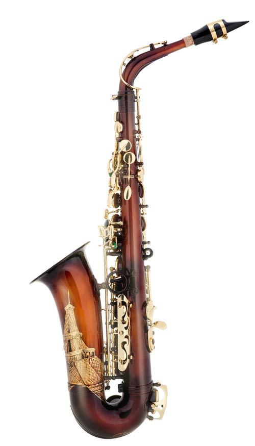 Os saxofones da Série Art da Château vêm em quatro acabamentos: Success in Career, Romantic Eiffel Tower, Liberty e Bon Voyage.