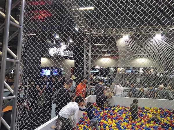 Também foi montada uma piscina de bolinhas gigante, com 25m², 30 mil bolinhas e algumas bolinhas personalizadas. Lá dentro, o público podia brincar a vontade, tirar fotos e, se encontrasse uma das bolinhas marcadas com o selo do jogo ganhava uma palheta produzida especialmente para a feira.