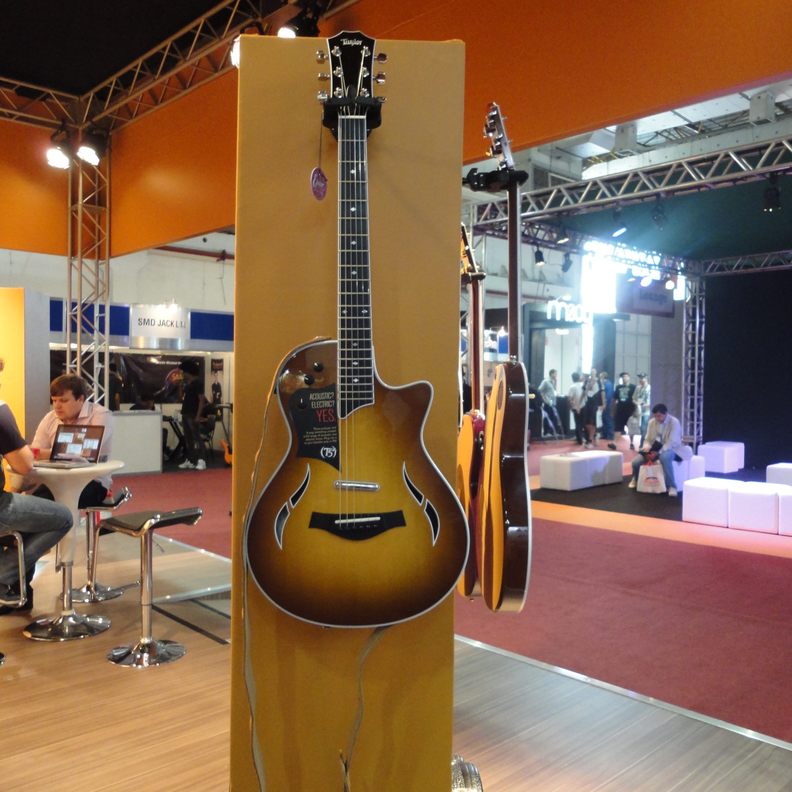 Outra novidade apresentada no estande da marca foi o novo modelo de instrumento híbrido da Taylor, o T5Z. Esses instrumentos híbridos da marca vêm um chave seletora para que o músico possa escolher seu timbre de preferência para a ocasião, violão acústico, elétrico, guitarra elétrica e acústica e um intermediário.