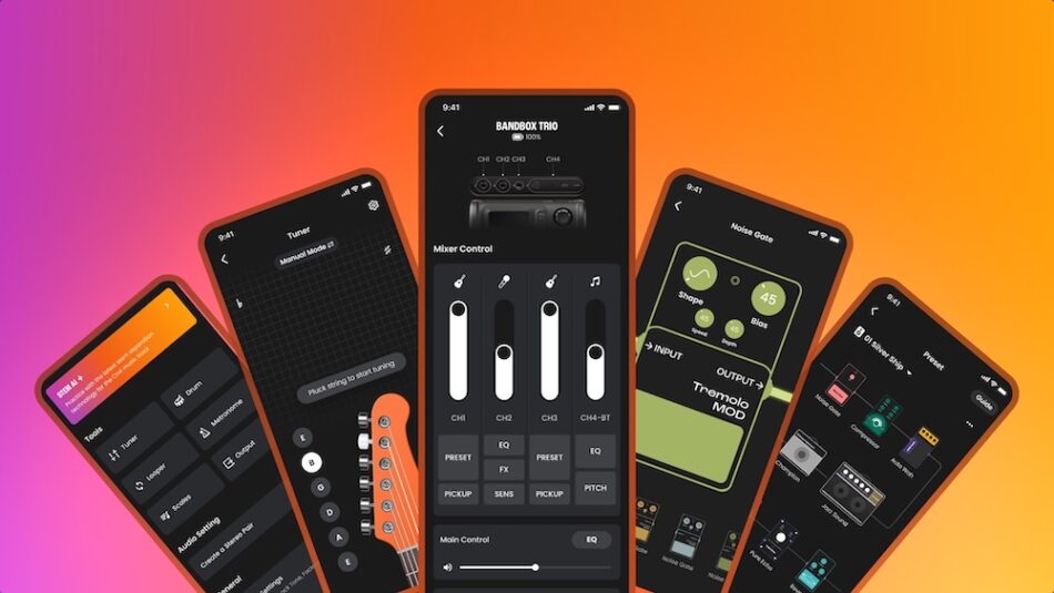 O recurso central da linha é a tecnologia Stem AI: separação em tempo real de vocais, guitarra e outros elementos de qualquer música reproduzida via Bluetooth, sem necessidade de internet e sem upload prévio de arquivo. O músico escolhe o que quer remover ou isolar — a guitarra para aprender um solo, a voz para cantar por cima, a bateria para trabalhar o groove — e o processamento acontece direto no hardware.