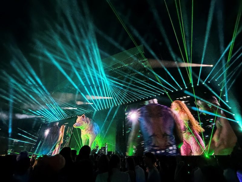 Norman integrou efeitos que acompanham a narrativa musical de cada faixa, variando entre beams intensos e acentos delicados. Em “Hips Don’t Lie”, por exemplo, ele criou camadas de feixes quentes com CTO e âmbar, expandindo a estética visual da tela para o espaço aéreo.