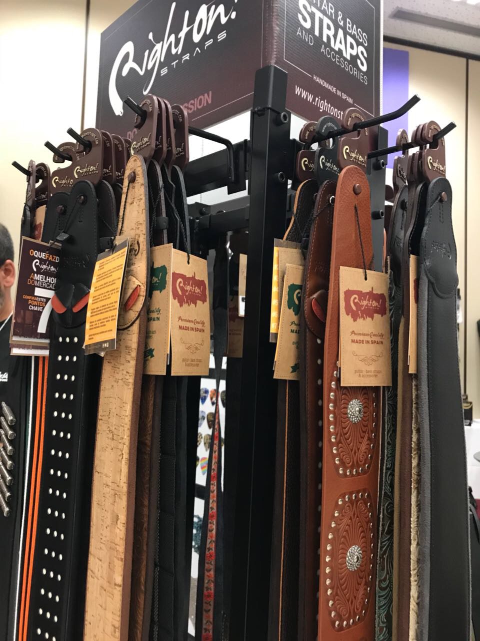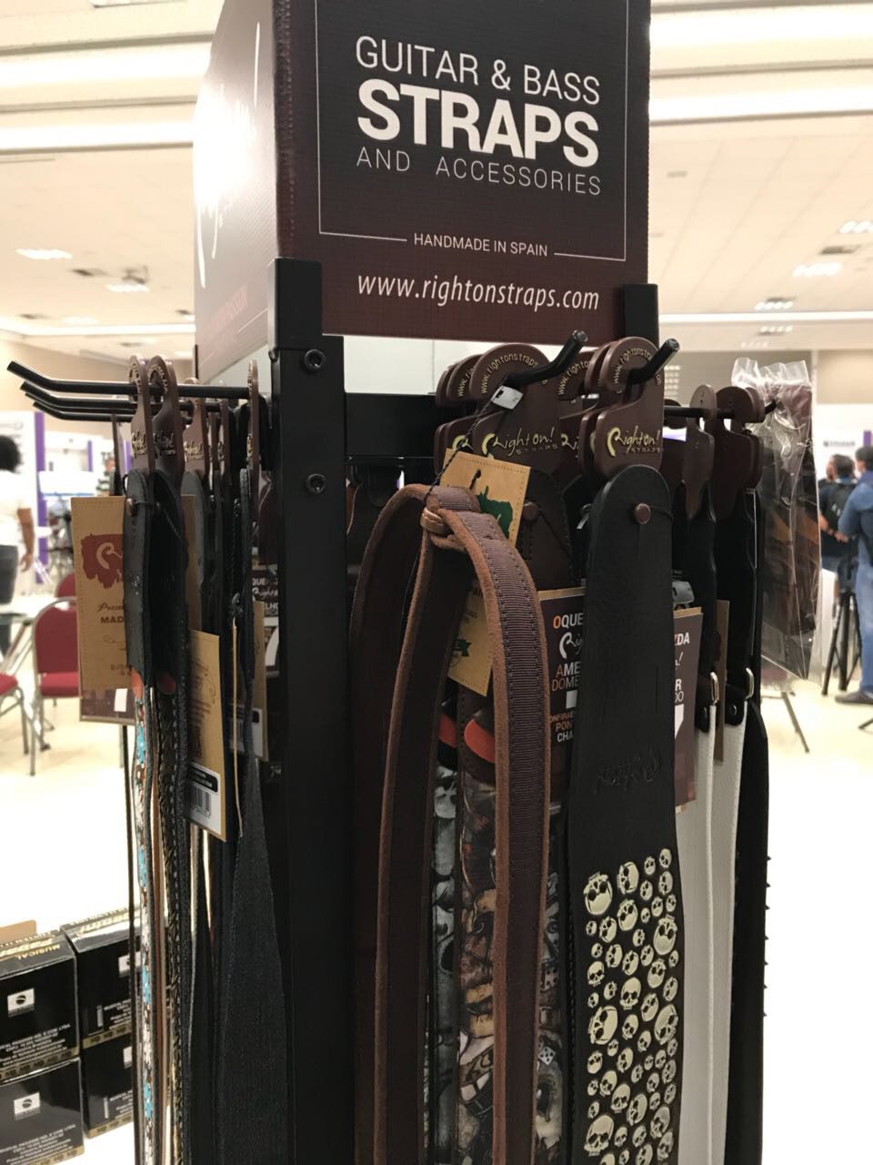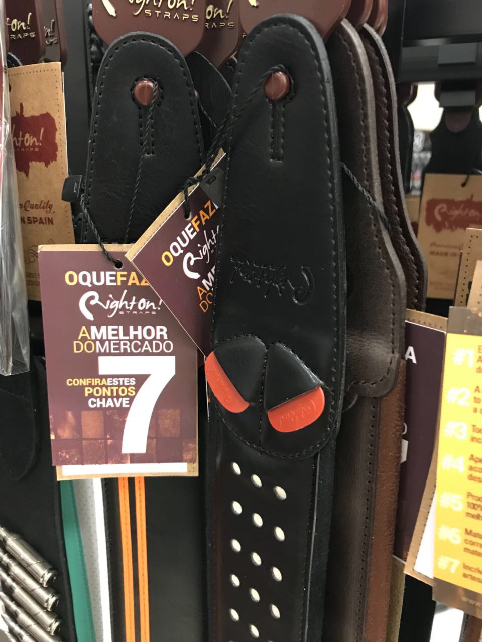 Além da linha ukeleles da Kala, Campanelli também destacou as correias da RightOn, contando-nos uma curiosidade. Antes de trabalharem no mercado musical, a empresa era responsável por fabricar as carteiras da estilista Carolina Herrera, fator que não só dá credibilidade em termos de qualidade como também acrescenta uma característica fashion às peças, visualmente impressionantes, fabricadas com materiais nobres e com acabamento irretocável. “Temos inclusive caixas especiais, personalizadas, para presentear as correias”, conta Campanelli.