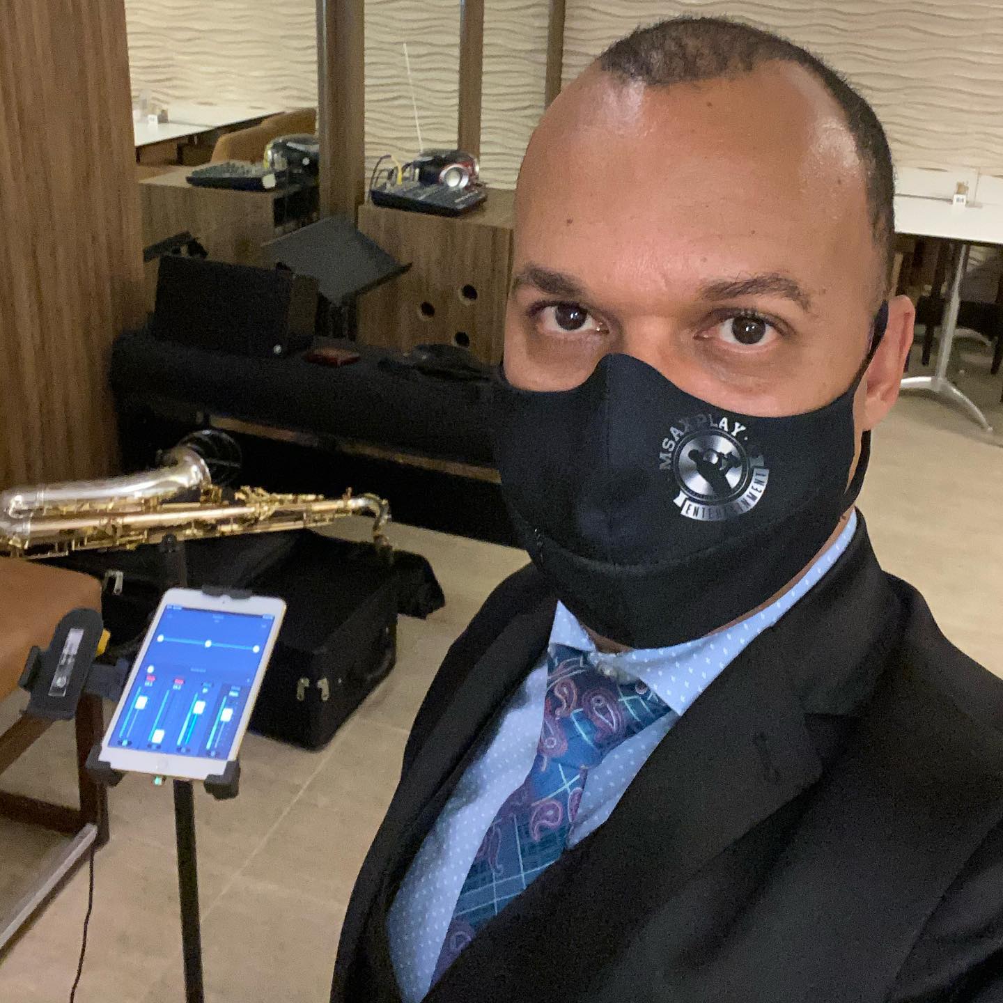 “Mesmo depois de tantos anos atuando ativamente em diversas áreas no cenário musical, a pandemia foi um enorme estopim para a minha criatividade”, conta Marquinho Sax, saxofonista, professor de saxofone e palestrante. “Nos primeiros dez dias fiquei em choque. Como eu já transmitia lives há muito tempo, ei ênfase às lives temáticas, com aulas gratuitas, na intenção de ajudar os colegas saxofonistas, mas logo na sequência criei um projeto voluntário chamado ‘Música na Varanda’, com o qual eu visitava os condomínios verticais e realizava gratuitamente um pocket show. Foram aproximadamente 3.500 famílias (apartamentos) atingidas diretamente e, segundo pesquisa realizada por uma associação de síndicos, 10 mil famílias atingidas no total, somando os prédios vizinhos. Para poder tocar e me proteger, tive a ideia de criar uma máscara facial que me permitisse tocar. Levei a ideia para uma confecção e eles colocaram um zíper. Desde então, após demonstrá-la em vídeos, a empresa passou a fabricar esse modelo sob encomenda e até estão vendendo para outros países!”.
