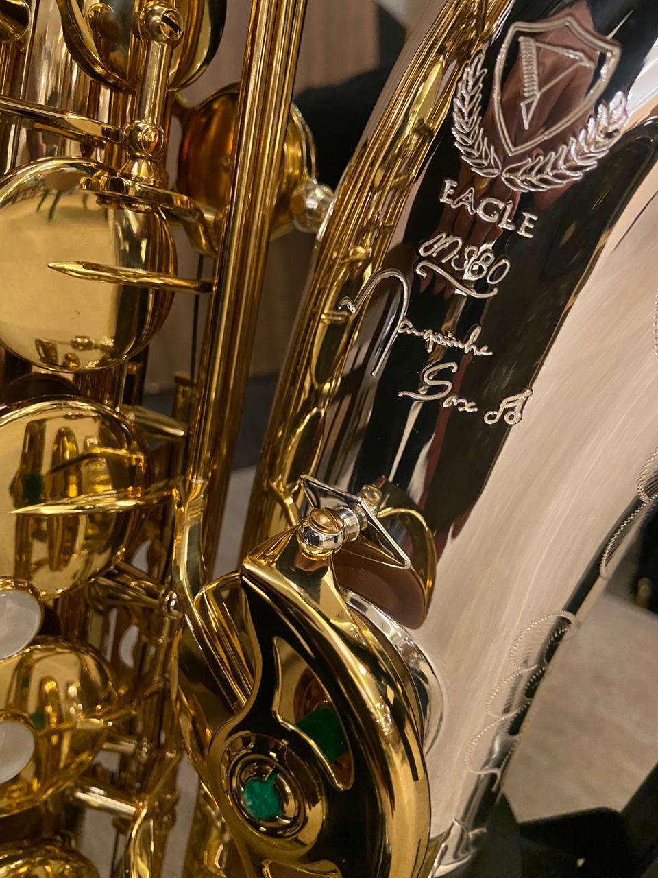Neste momento estou retomando as performances ao vivo e, juntamente com as empresas que endosso, preparando o lançamento de três produtos com a minha assinatura, uma enorme honra e responsabilidade para mim. São eles: o saxofone Eagle MS80 Signature Marquinho Sax, a boquilha Barkley MS8 Signature Marquinho Sax e a linha de cases Safe Box Cases MS800 Signature Marquinho Sax.