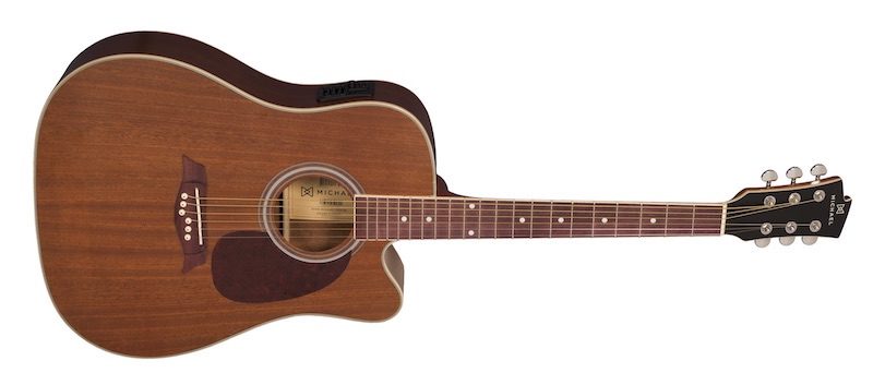 Outro modelo na mesma linha é o MICHAEL TAURUS FOLK VM921DTC MH – MAHOGANY, um violão modelo Folk com cutaway (elétrico), tamanho 4/4 – 41” / 104cm, tampo, braço, laterais e fundo em Mahogany. Também em cor Mahogany (MH).