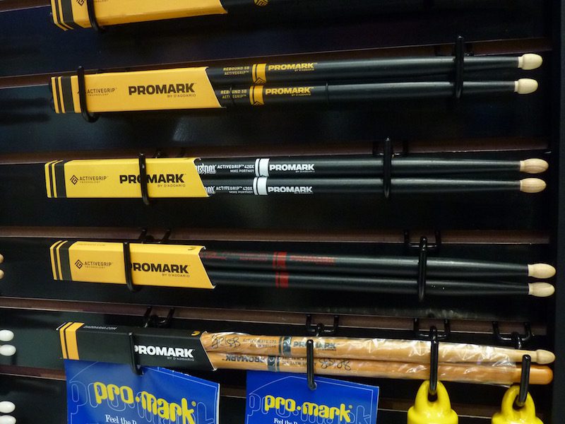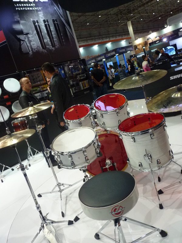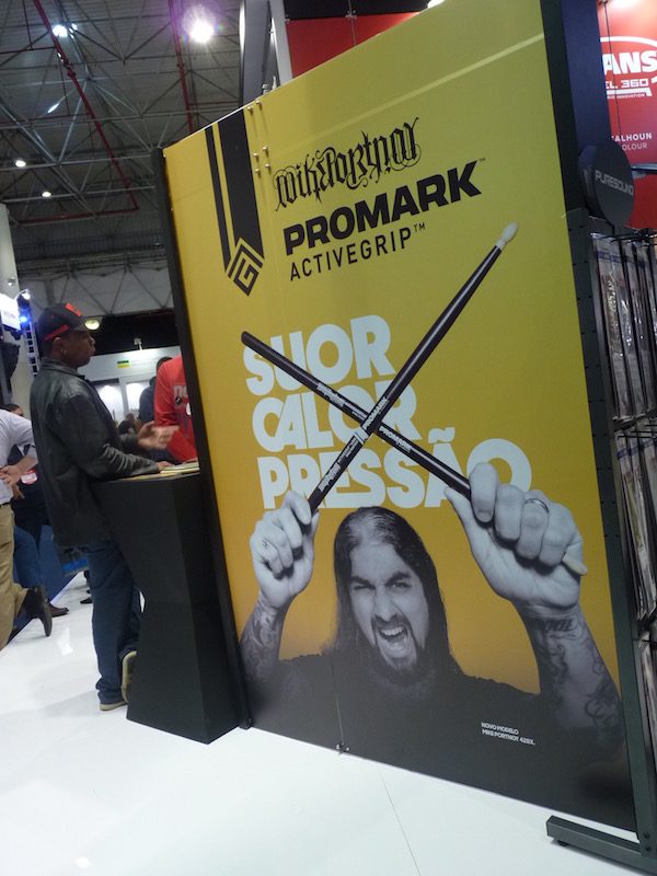O grande e lindo estande da Musical Express estava divido por marcas e logicamente não faltaram as novidades, como as peles da Evans Calftone Bumbo e as vermelhas Hydraulic Red, os encordoamentos D’Addario Nickel Bronze para violão aço e as cordas D’Addario NYXL Bass para baixo e as baquetas Promark série Active Grip com um revestimento que adere à mão do baterista conforme aumenta sua temperatura, sendo um dos modelos signature o Mike Portnoy 420X incorporando essa tecnologia.