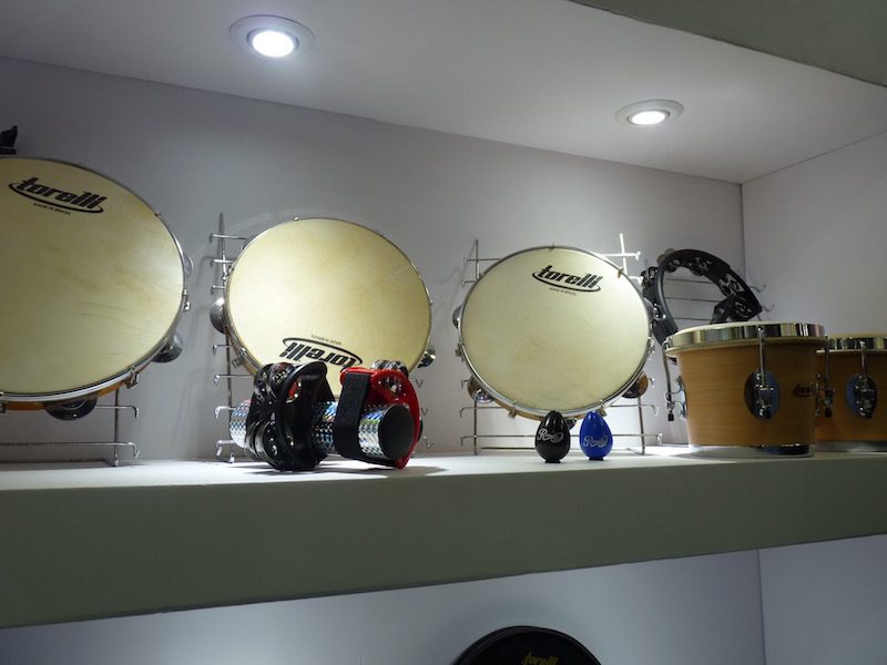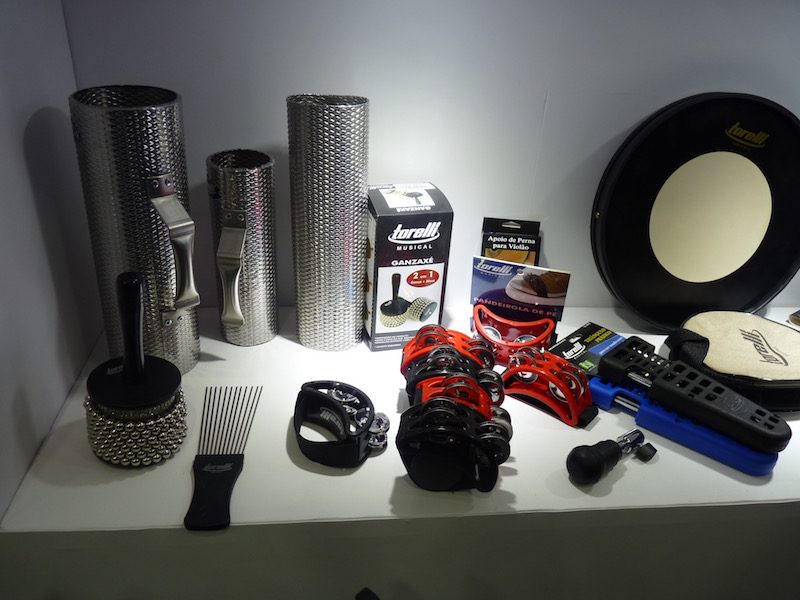 Além das ferragens, totalmente fabricadas pela Torelli, a empresa trouxe outras novidades, como os acessórios e instrumentos de percussão, incluindo tamborins e pandeiros.
