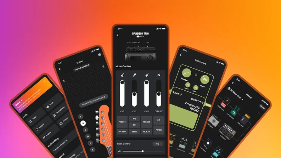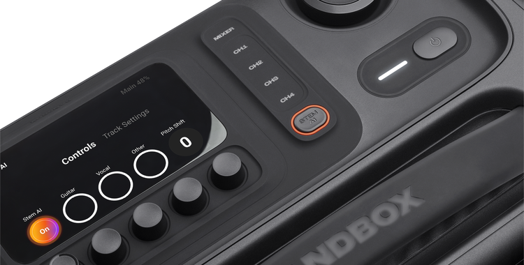 O recurso central da linha é a tecnologia Stem AI: separação em tempo real de vocais, guitarra e outros elementos de qualquer música reproduzida via Bluetooth, sem necessidade de internet e sem upload prévio de arquivo. O músico escolhe o que quer remover ou isolar — a guitarra para aprender um solo, a voz para cantar por cima, a bateria para trabalhar o groove — e o processamento acontece direto no hardware.