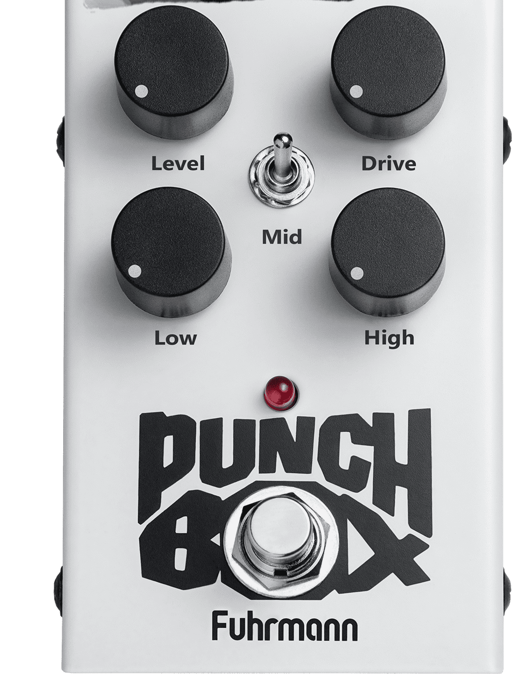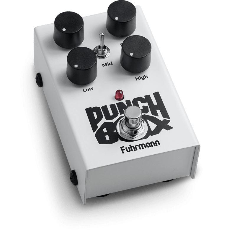 Mantendo sua sonoridade própria e marcante, a primeira grande mudança está nos controles de graves (Low) e agudos (High), que antes eram controlados apenas por um botão (Tone). Agora, a mudança mais significativa é o controle para os médios. Nesta nova versão do Punch Box a Fuhrmann colocou uma mini chave seletora com 3 níveis, onde o instrumentista perceberá melhor a diferença em cada posição.