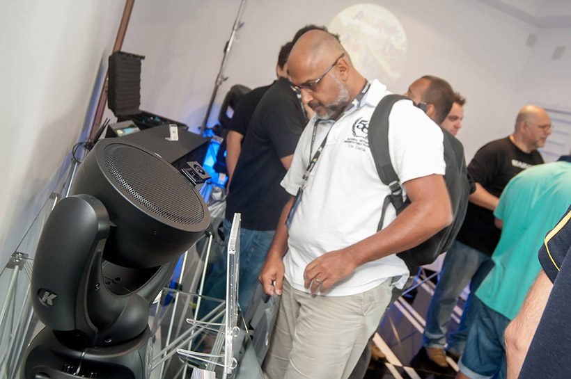 Por fim, os presentes participaram do Gobos Experience, uma experiência imersiva de áudio e luz que junta 19 canais de áudio K-Array com uma trilha sonora própria, vídeo e luzes temáticas demonstrando todo o potencial dos sistemas.