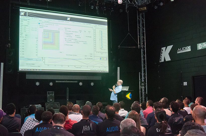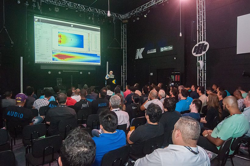 Com a apresentação de diversos cases de mercado, desde shows a instalações fixas em templos e igrejas, por exemplo, o executivo abordou questões como som direto e som reverberante, curvas A, C e Z, medição, RT60, inteligibilidade e softwares.