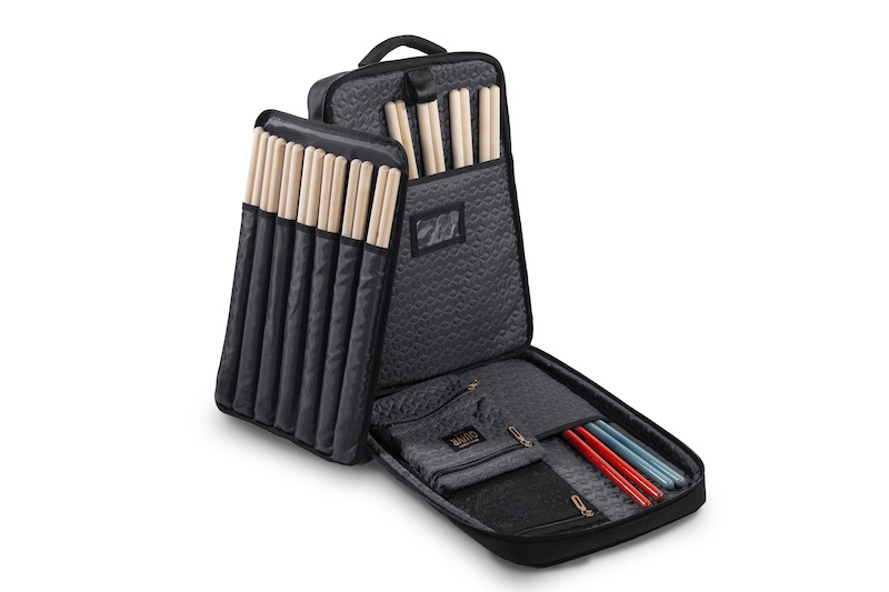Como a original, esta nova bolsa tem vários bolsos de carga que são ideais para armazenar acessórios de bateria, incluindo feltros de prato, porcas de reposição, chaves de bateria e outros pequenos itens essenciais para bateristas. Outros bolsos incluem um especialmente projetado para um power bank sem fio e outro grande o suficiente para acomodar um MacBook ou laptop PC.