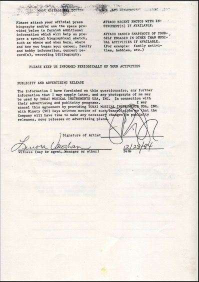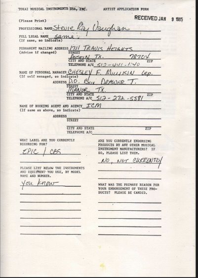 - Cópia do contrato de Steve Ray Vaughan com a Tokai Guitars
