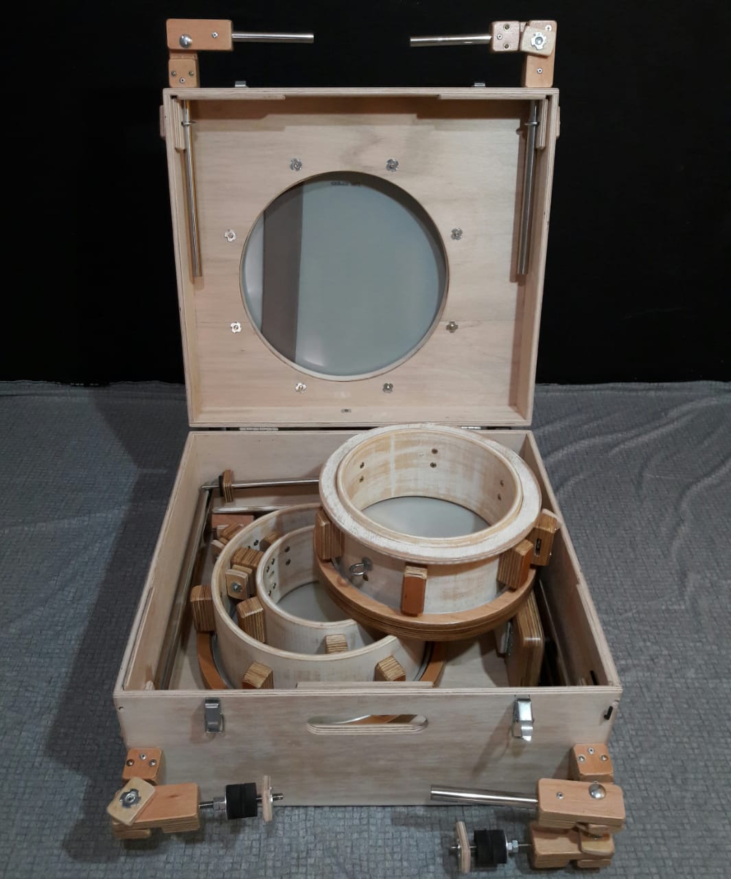 Seguindo essa regra, a matéria-prima é basicamente a madeira, em chapas de compensado e outros formatos, que são adquiridas em lojas comuns desse segmento. “O legal de desenvolver um instrumento artesanalmente é que você acaba utilizando os materiais disponíveis na sua região e encontra soluções com o que tem em mãos”, enfatizou.