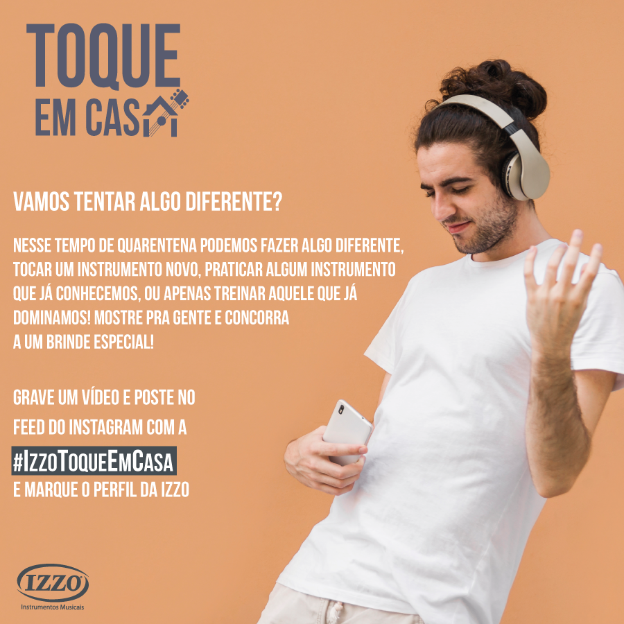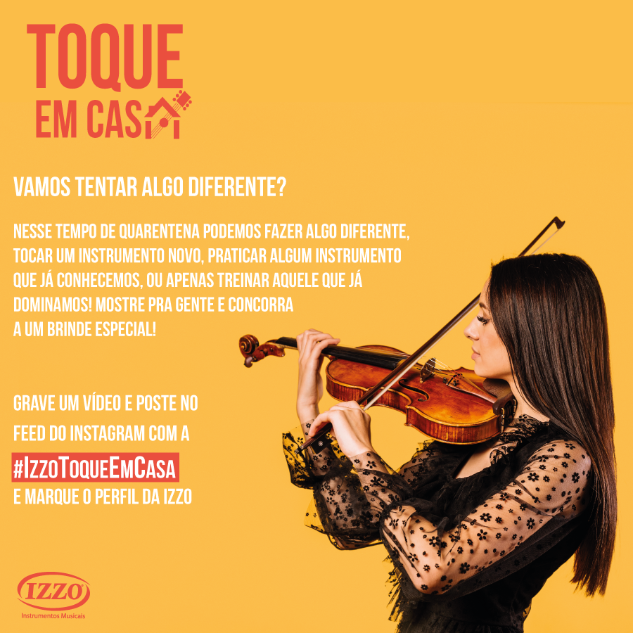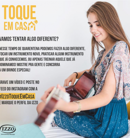 Por outro lado, #IzzoToqueEmCasa é uma promoção para incentivar as pessoas a praticar algum instrumento musical no período de quarentena. Os participantes precisam gravar um pequeno vídeo, postar no Instagram com essa hashtag e marcar @izzo.musical. No dia 20 de Abril será escolhido o vídeo mais criativo e divertido que levará 01 prêmio (somente um) da Izzo Musical a sua escolha. Pode ser um pack SG contendo 01 caixa de cordas (guitarra, baixo ou violão a sua escolha), palhetas SG e uma camiseta da marca; um ukulele Kalani Kayke KAL300CS (código: 15418); um pandeiro profissional Timbra Top Percussion (código 8629) ou um violino Dominante 4/4 Especial (código 9650).