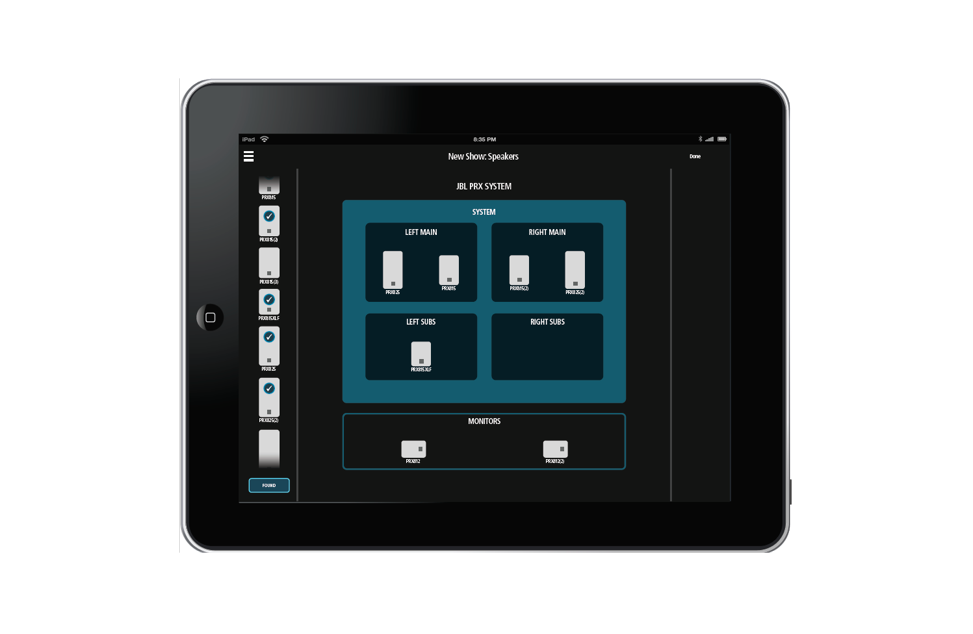 Outra diferença é o aplicativo utilizado. Aquele da linha EON pode conectar até quatro caixas, mas no caso da PRX, podem ser conectadas até nove caixas e funciona por meio de Wi-Fi (não de Bluetooth, como na linha EON). No caso da PRX, o aplicativo funciona só para tablet, para Android e iOS.