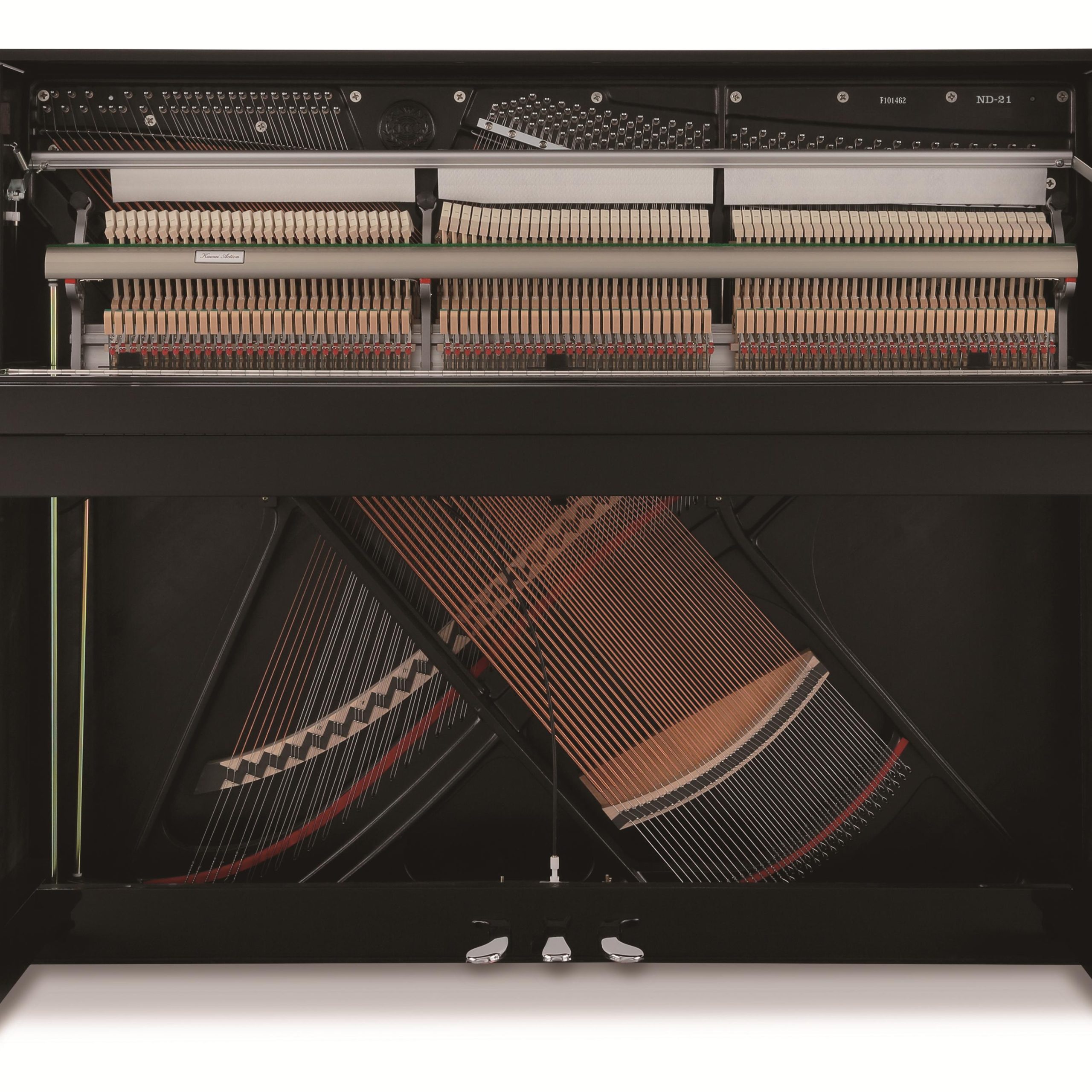 O time de Pesquisa e Desenvolvimento de Projetos da Kawai, com o objetivo de produzir um piano vertical de custo mais baixo, mas que mantivesse todas as componentes de valores que distinguem os pianos Kawai, criou o ND‐21, com detalhes de acabamento arrojados, como o chassi de ferro e tábua harmônica na cor Preta.