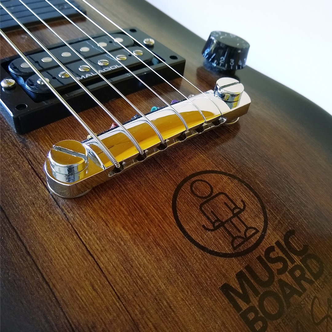 Thales Rosa: Muito legal essa pergunta. Nosso slogan é: “Uma experiência visual e sonora”. Isso diz muito sobre a Musicboard, o primeiro contato visual é sempre com desconfiança e ao mesmo tempo com um espanto positivo. Quando é tocada gera outro sentimento positivo porque o timbre e o volume de som são surpreendentes. Isso se dá por vários motivos, temos uma tensão alta em uma escala curta, usamos cordas SG Andreas Kisser (calibre 0.13) e captadores Malagoli especialmente desenvolvidos, que propiciam muito ganho nos graves e sustain. Além disso, como não existe contato dos dedos, é preciso usar um slide, que entregamos junto com o instrumento.