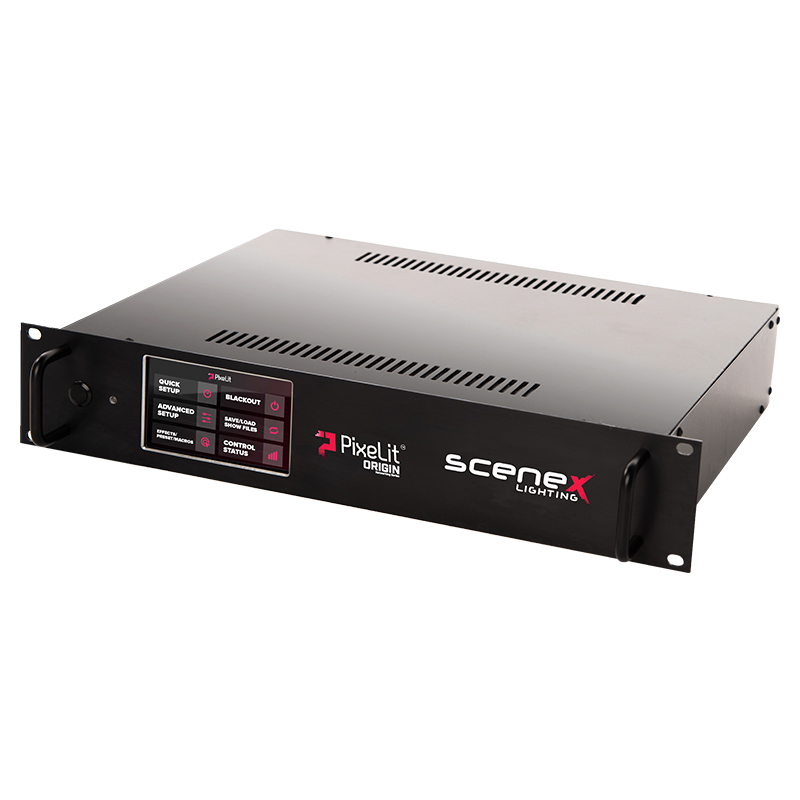A Scenex Lighting apresentará a mais recente inovação em controle de pixel de LED, o PixeLit Control Manager. O PixeLit permite o controle de até 256 universos DMX individuais de dados LED. Cada universo pode ser executado a uma distância de até 500 pés da sua fonte, com uma atualização constante de 60 frames por segundo. Tudo isso é feito a partir de uma unidade de montagem em rack compacta de 2U e 19″ com uma tela de toque embutida de 5″.