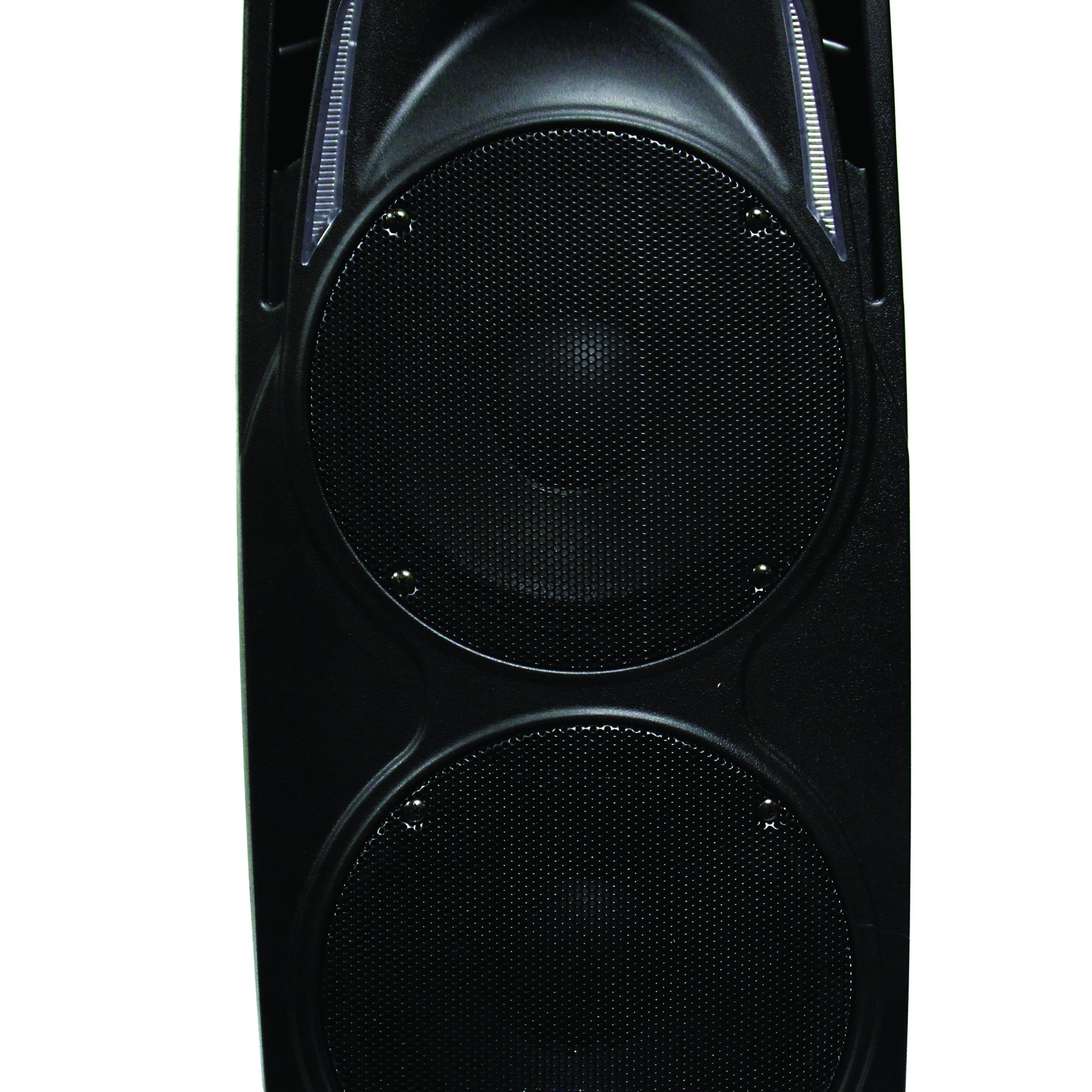 Recentemente lançada pela Proshows no mercado brasileiro, esta caixa ativa é discreta e de alta performance, com amplificador classe D de 300W RMS de potência. Possui 2 canais de entrada para microfones VHF. MP3 player, 2 Woofer de 10” e saída de linha. Apresenta controle de volume independente por canais, bateria recarregável e indicador de bateria baixa.