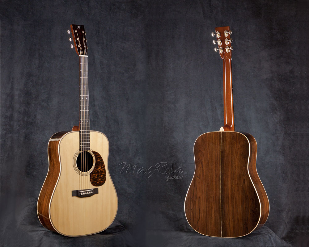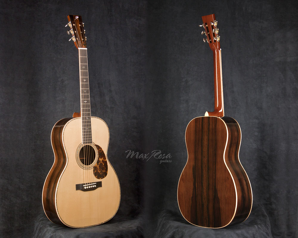Max Rosa: Atualmente estou muito envolvido com meu mais recente modelo, o Slope Jumbo, que é inspirado nos Gibson vintage, especialmente o J-35, que é um dos acústicos da Gibson mais sonoros e valiosos no meio dos colecionadores. É um instrumento muito especial, de sonoridade mais selvagem com projeção de médios bem diferente dos Martin. A construção interna dele é muito peculiar, e por isso o timbre tem suas características próprias. Eu também gosto muito dos violões 00 (duplo zero) com escala curta e encaixe na 12ª casa. São instrumentos adoráveis, de timbre macio e muito confortáveis de tocar.
