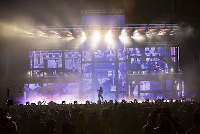As luminárias Pointes foram instaladas em uma série de seis treliças acima do palco criando uma forma trapezoidal, que é mais larga no topo. Cada uma dessas treliças foi instalada individualmente através de um sistema de automação.