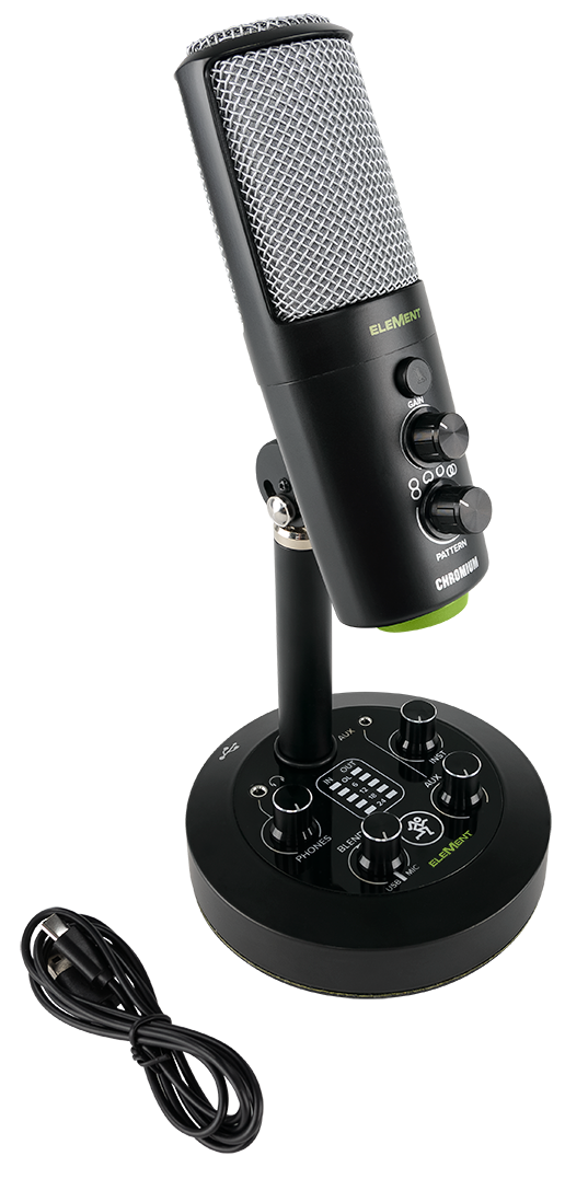 O microfone condensador USB Chromium Premium possui um mixer integrado de dois canais com entradas de instrumento e estéreo de 1/8”. Este microfone “plug and play” oferece quatro padrões polares, incluindo estéreo, cardióide, bidirecional e omnidirecional. Equipado com suporte para mixer integrado, cabo USB-C e taxa de amostragem de 16 bits/48 kHz, o Chromium foi projetado para gravar música, podcasts, transmissões ao vivo e criação de conteúdo on-line.