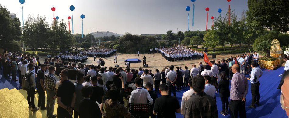 Na fábrica da empresa, 800 funcionários fizeram um desfile, enquanto o sr. Wang Xianggui, fundador e presidente do grupo, fez o discurso de boas-vindas. As empresas chinesas têm um ritual peculiar em suas festas de aniversário. Isso é interessante para os olhos estrangeiros. Elas possuem um forte teor nacionalista, ritos, simbolismos, bandeiras e discursos com tom político.