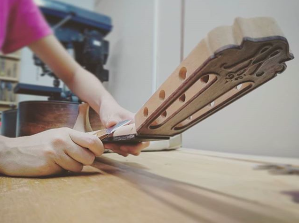 Monicky: Sim, faço todas as etapas do instrumento. Desde o design até o acabamento.