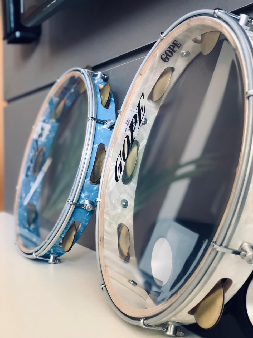 A fabricante de percussão Gope estará lançando um pandeiro de celuloide de 12” pesando apenas 0,580 grama, disponível em diferentes cores.