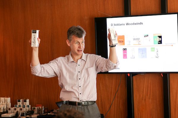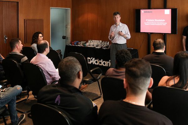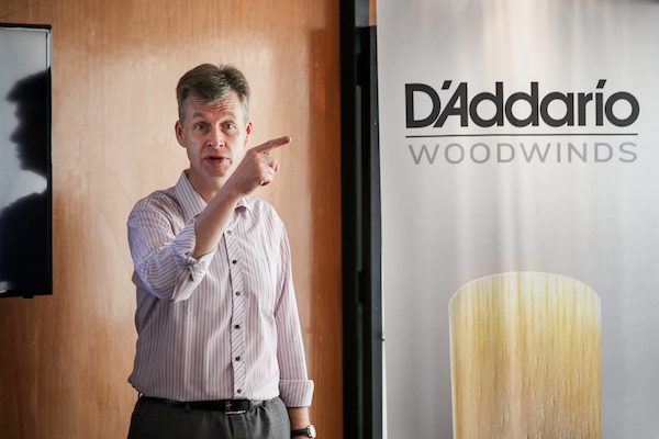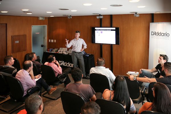 No treinamento, Jean-François Bescond falou sobre a linha completa da D’Addario Woodwinds, como palhetas e boquilhas, com destaque para o lançamento da Boquilha para Sax Alto Reserve e Palhetas Reserve para Clarone. À noite, Jean-François se reuniu com os endorsees e outros grandes músicos de sopro do país em um cocktail oferecido pela empresa.