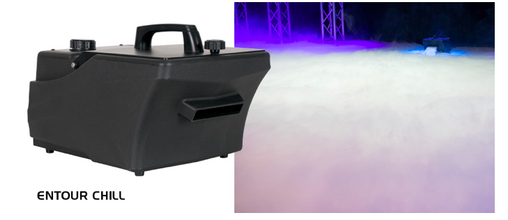 A nova máquina de fumaça baixa Entour Chill também está fazendo sua estréia no NAMM Show, usando líquido padrão à base de água e cubos de gelo para gerar um efeito semelhante ao de uma máquina de gelo seco.