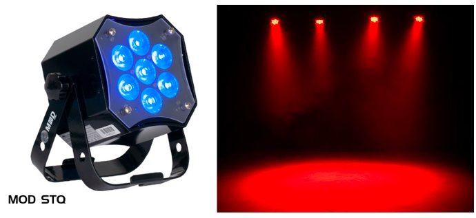 Mas não encontramos essas novidades só no estande da ADJ, porque a empresa também está mostrando os aparelhos que lançou no final do ano passado, como o moving Focus Spot 2X, com motor LED de 100 W, foco motorizado, dois prismas, 8 cores dicróicas mais open e mais; e o aparelho wash MOD STQ de estilo PAR alimentado por sete LEDs de 8 W.