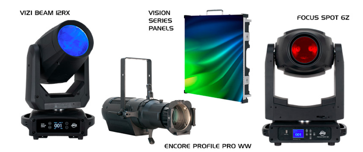 Quer ver mais? Os aparelhos: beam moving Vizi Beam 12RX, unidades de strip de LED EGB da Pixie Strip Series, elipsoidais LED Encore Profile Pro WW e Encore Profile Pro Color, painéis de vídeo LED da série Vision, spots moving Focus Spot 5Z e Focus Spot 6Z, o wash Focus Wash 400 e o moving Hydro Wash X19 também estão em ação.