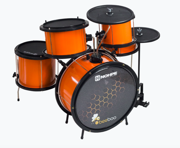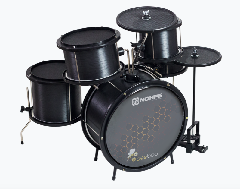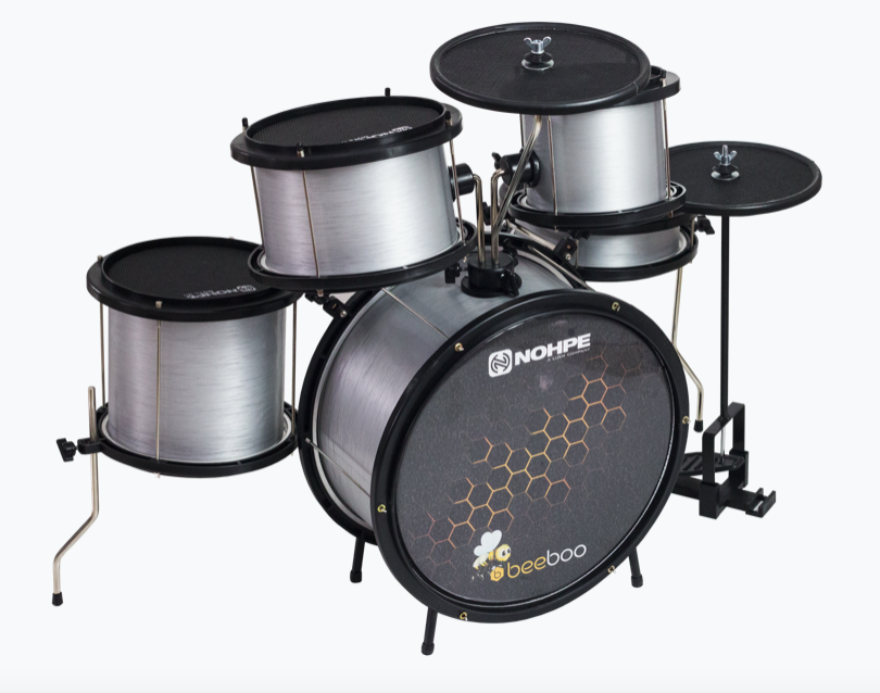 Bateria Beeboo: “É uma grande inovação na linha de baterias infantis”, disse Tiago. Ela possui a mesma estrutura das baterias da Luen, entretanto é equipada com as peles Mute e pratos silenciosos. Com essa bateria a criança consegue estudar e brincar sem incomodar os pais e vizinhos, visto que ela possui apenas 20% do volume de uma bateria convencional.
