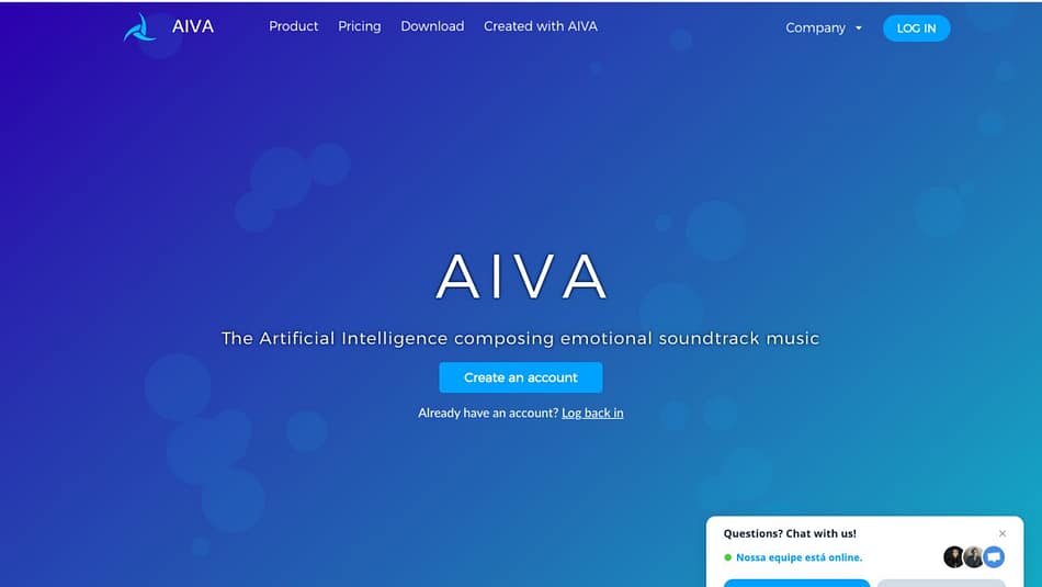 AIVA é uma compositora de música de IA treinada em milhares de partituras musicais. A IA é capaz de compor trilhas sonoras emocionais para filmes, comerciais, jogos, trailers e programas de TV2.