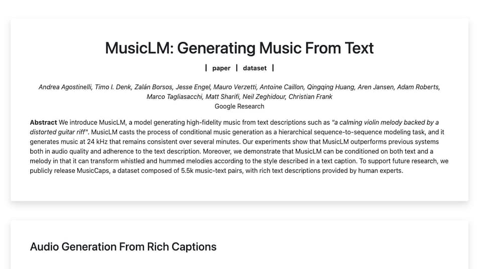 A Meta também comparou seu sistema ao modelo MusicLM de texto para música do Google. A Meta tem sua própria página mostrando as características dos dois modelos para comparação direta.