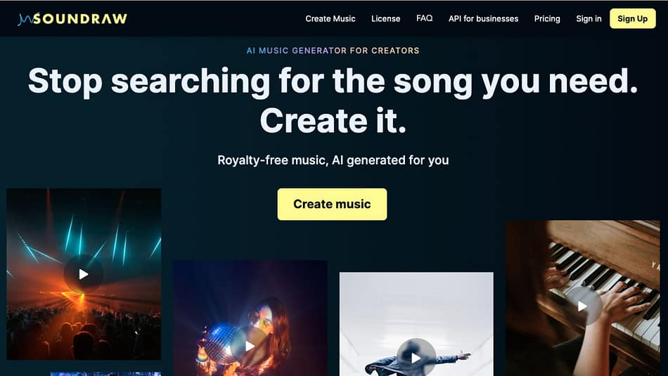 Soundraw.io é um novo serviço de música que atrai criadores de conteúdo para gerar suas trilhas sonoras musicais com suas ferramentas de criação de música impulsionadas por IA. O serviço é um gerador de música que fornece música royalty-free composta por inteligência artificial2.