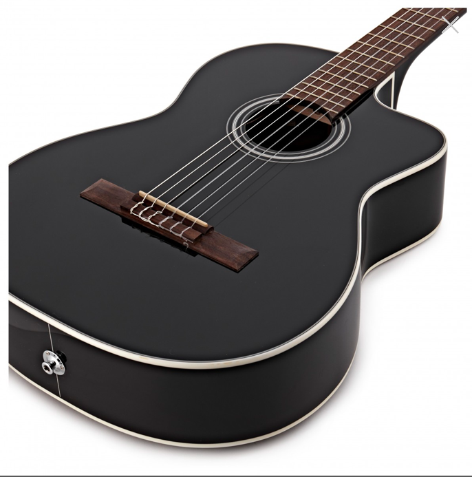 O violão Takamine GC2CE traz pré TP-4T, indicado para quem está começando a tocar, está disponível somente na cor preta.