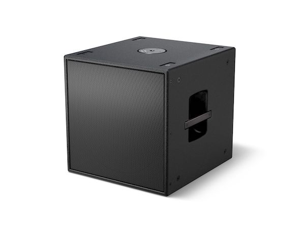 Subwoofer multiuso AMS115: transdutor de 15” com extensão de baixa frequência de até 35 Hz e saída pico de 130 dB. Pesa 28 kg e possui um sistema integrado de montagem em poste M20 e 12 pontos M10 para suspensão em instalações permanentes.