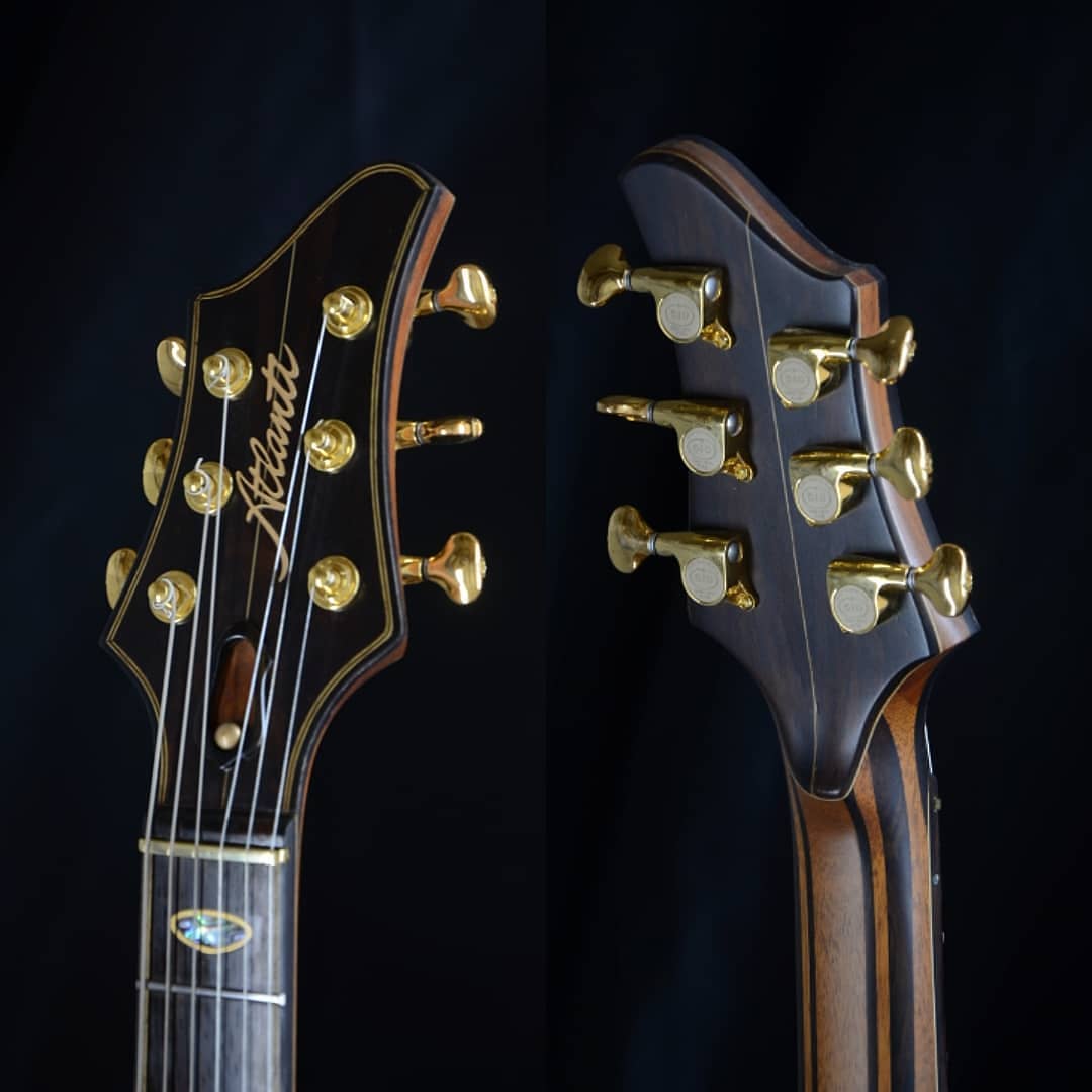Adriel: Minha trajetória na luteria começou cedo, aos 13 anos de idade, numa brincadeira com meus primos. A ideia era apenas improvisar tambores com baldes e “guitarras” com vassouras, coisa de criança mesmo. Naquela altura eu nunca tinha visto uma guitarra na minha frente e não tinha nenhum parente, mesmo que distante, que tocasse uma. De repente, naquela tarde me vi com um pedaço de araribá na mão, uma das madeiras mais raras e bonitas da Mata Atlântica (daí o nome Atlanti), esculpindo com facão aquilo que viria ser a minha primeira tentativa de fazer um braço de guitarra. Nessa mesma época, eu estava maravilhado com a sonoridade da banda Queen especialmente com a voz de Mercury e os timbres carregados de delay e overloops de Brian May. Lendo um pouco sobre o guitarrista, logo me identifiquei com o fato dele ter construído junto com seu pai, Harold, a lendária guitarra “Red Special”. A partir desse dia, não larguei mais essa ideia e continuei a fabricar protótipos e a realizar testes (muitos deles malsucedidos). Pensei em desistir, mas o apoio irrestrito do meu avô foi decisivo, sou muito grato a ele. A profissionalização só veio anos mais tarde quando fundei a Cratone Custom Guitars. Operei um tempo com esse nome, mas logo fui contratado pela Warwick para trabalhar na Alemanha. Após uma breve passagem pela renomada empresa, decidi que minha realização estava em fazer meus próprios instrumentos. Resolvi voltar ao Brasil, e após um longo hiato de dois anos, recriei a marca com o nome “Atlanti”.