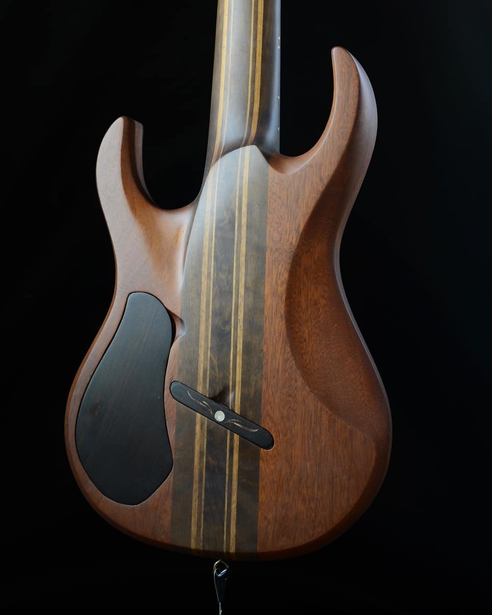 Adriel: O foco são os modelos próprios, afinal de contas a minha primeira experiência no universo da luteria aos 13 anos, como citado na primeira pergunta, foi um projeto com linhas próprias, tortas, porém próprias. Minha intenção é difundi-los fortemente. Mas também sou procurado para fazer formatos customizados para o cliente. Entretanto, se solicitado, sou completamente apto a construir uma guitarra com formato mais tradicional, como strato ou tele.